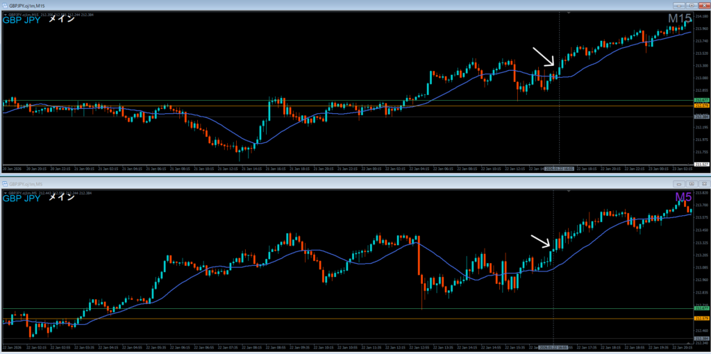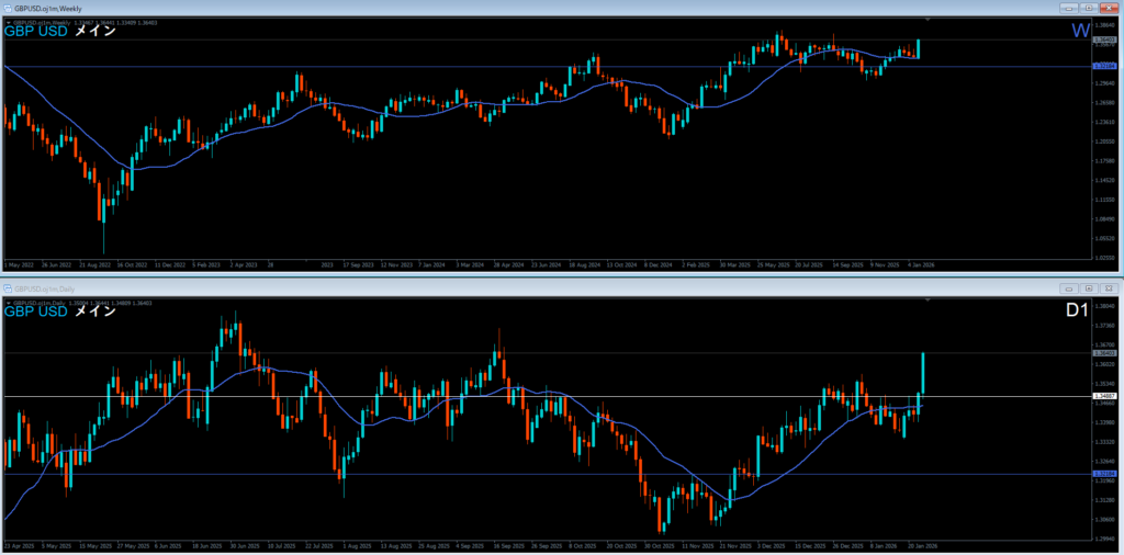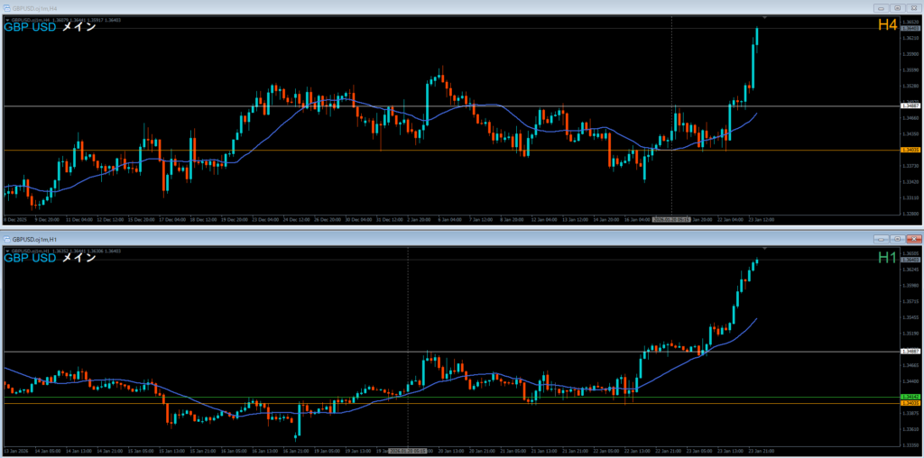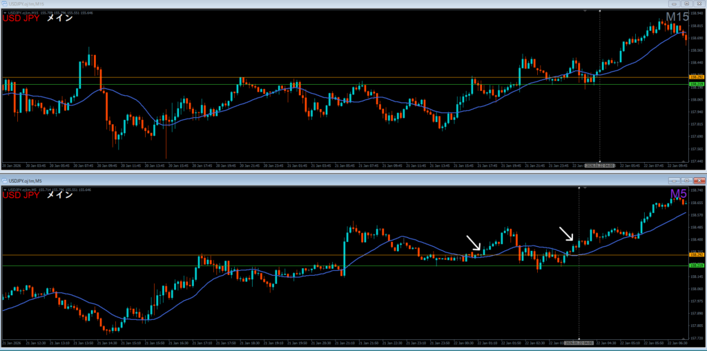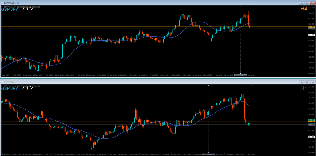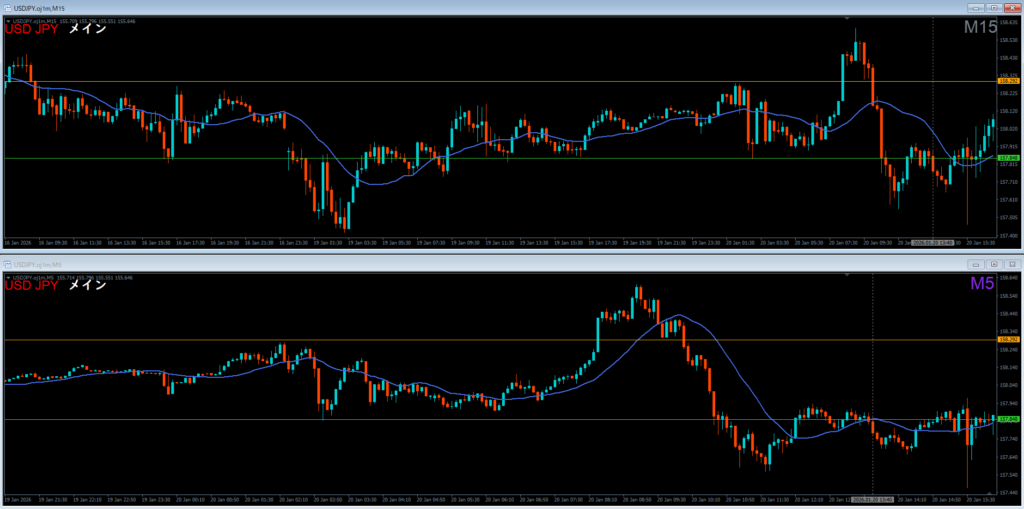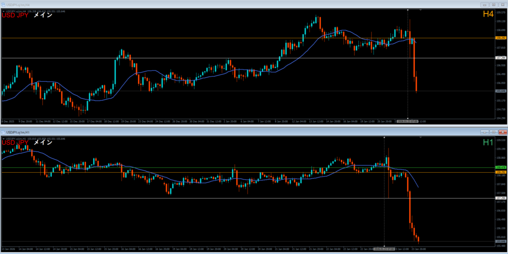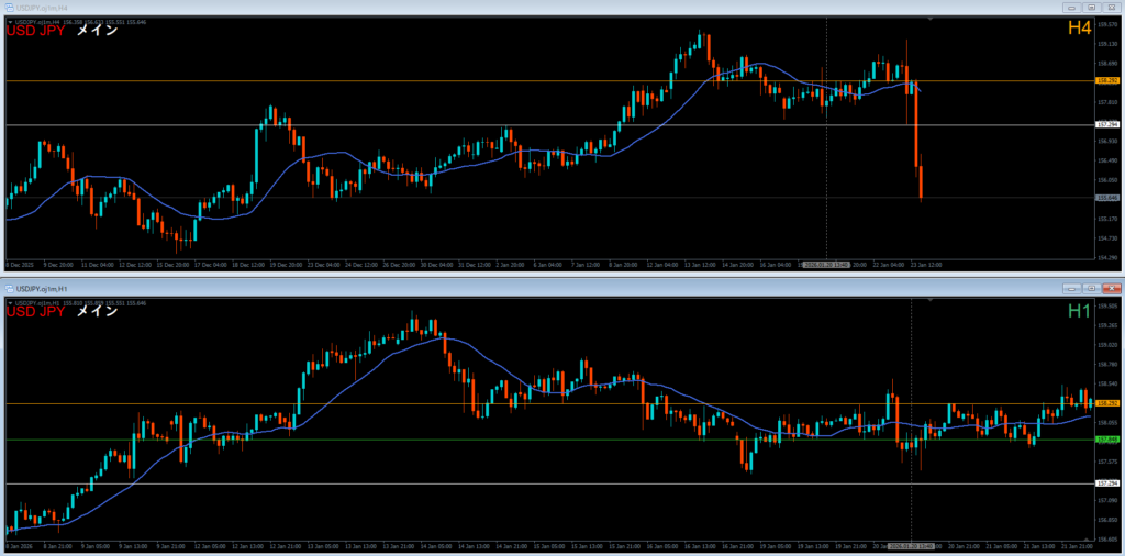 ドル円 2026.01.23 15:25 ロング 4時間押し目買い どこおわ 日足の波