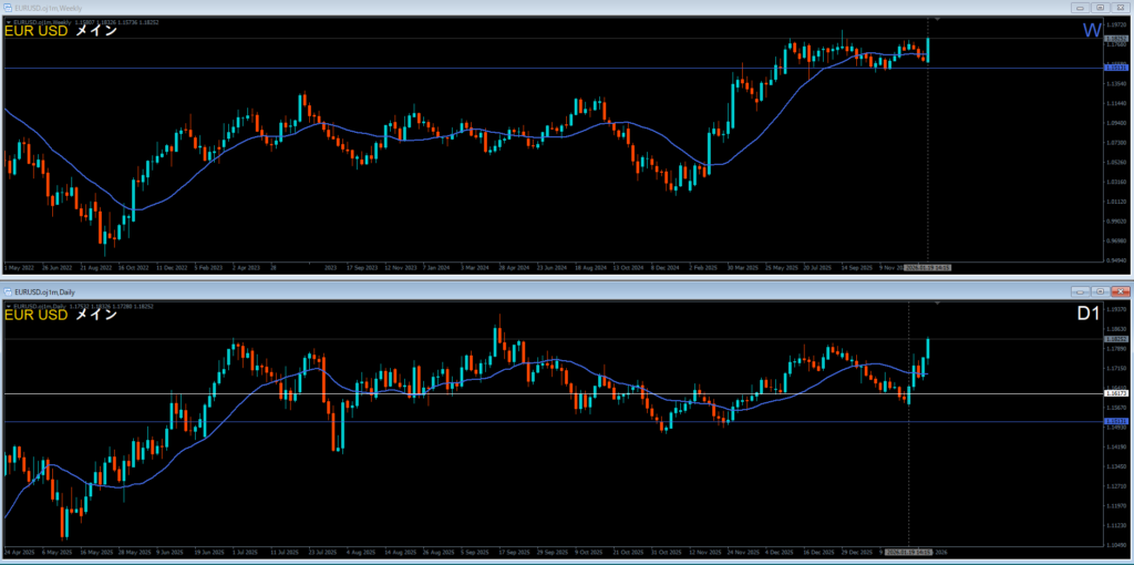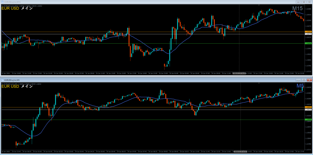 ユロドル 2026.01.19 21:15 4時間1波1時間足3波狙い