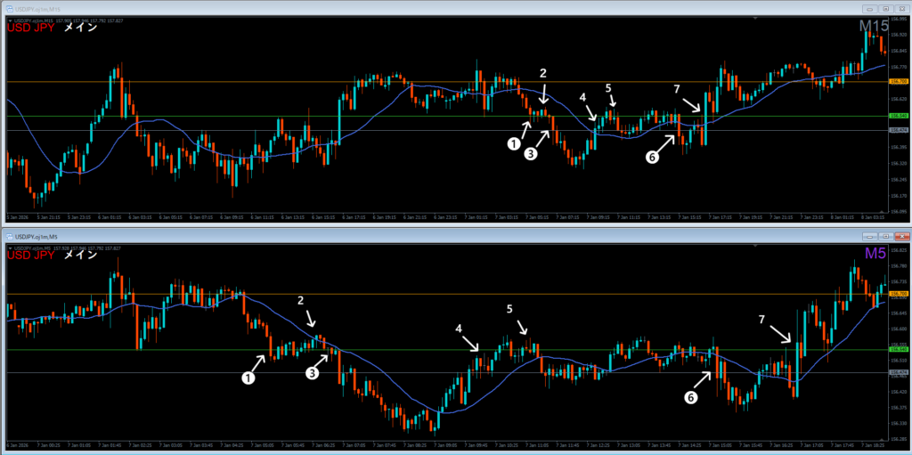 ❸2026.01.07 13:45 入り直し 同じ価格帯で 損-8 獲得 -2