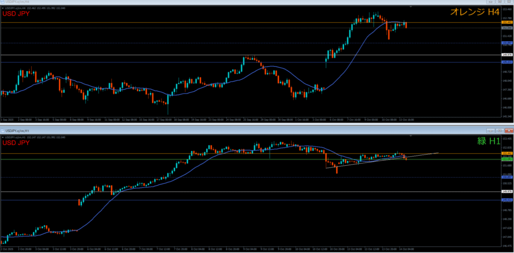 ・10/13(月)の4時間足のTTS水平ラインの考え方は理解できている。