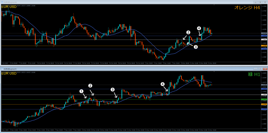 ・ふみさん、ゆたさんの存在確認無しの1時間エントリが日足の波だからできるというのが分かった。