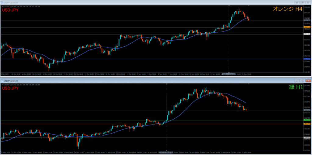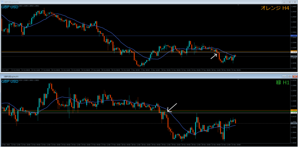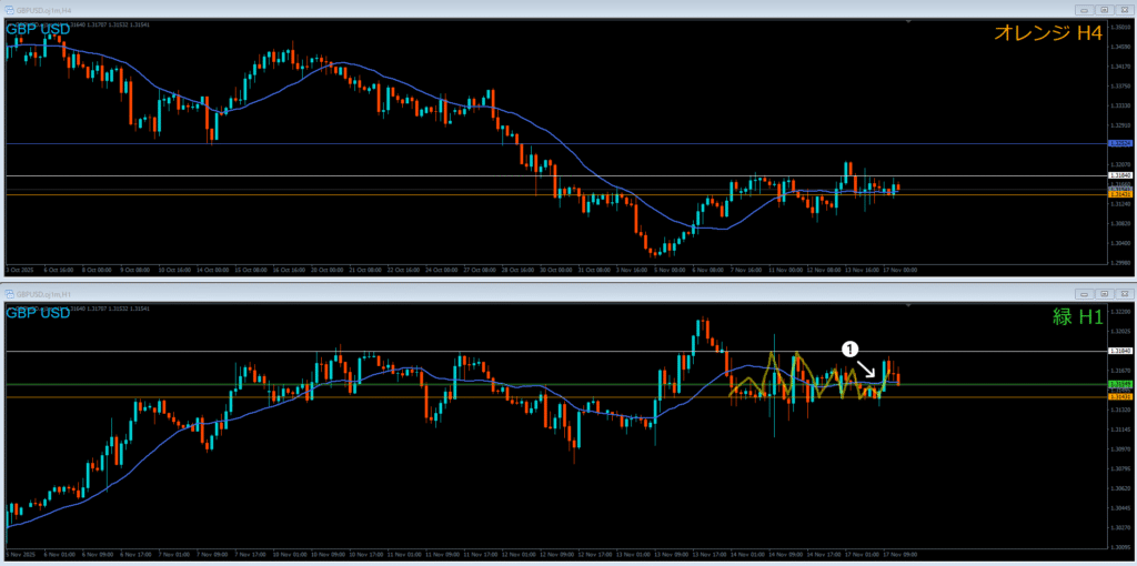 1時間足ダウ少し小さく見えるかもだが許容範囲。