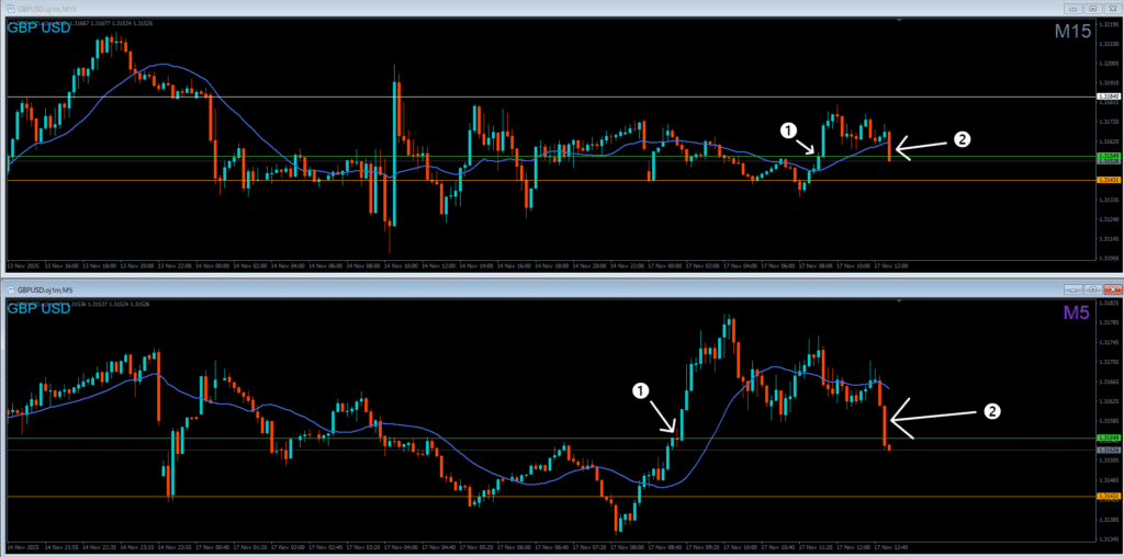 日足全戻しからの4時間1っ波狙いの1時間足戻り売り。