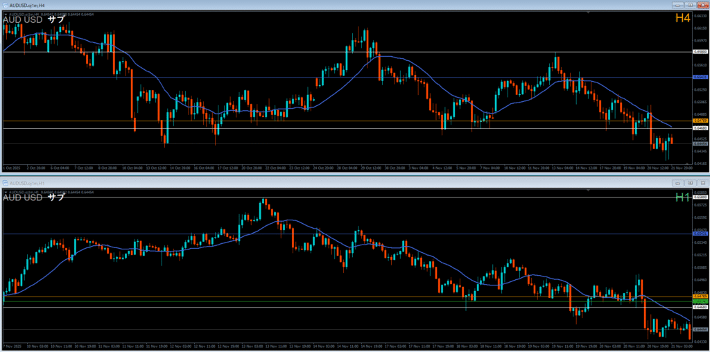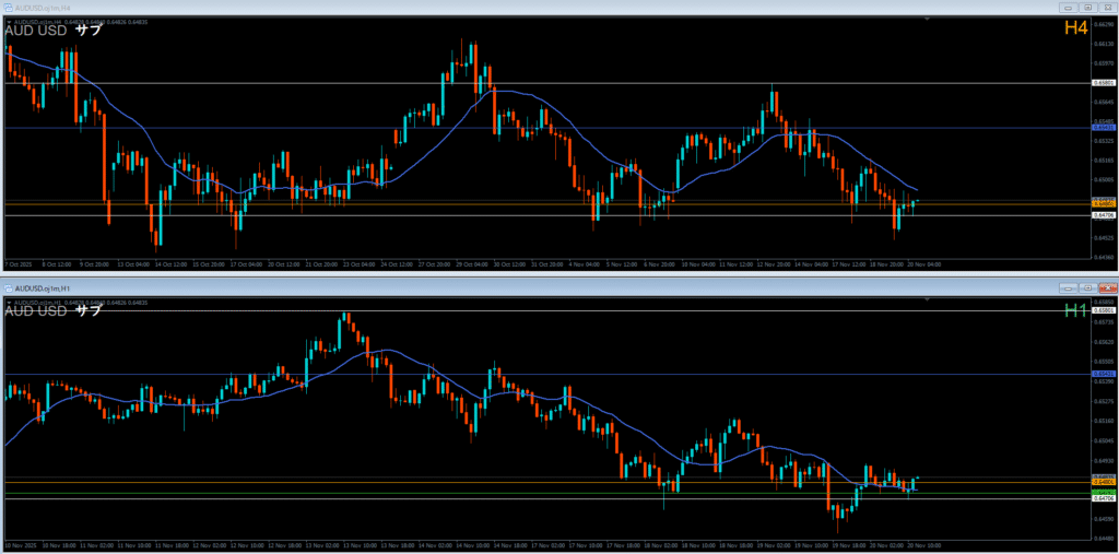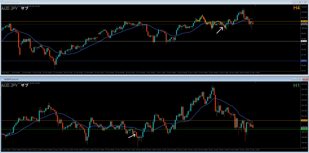 ・H1ネックライン抜けエントリポイントだが、4時間波的、時間経過的にスルーでOK。