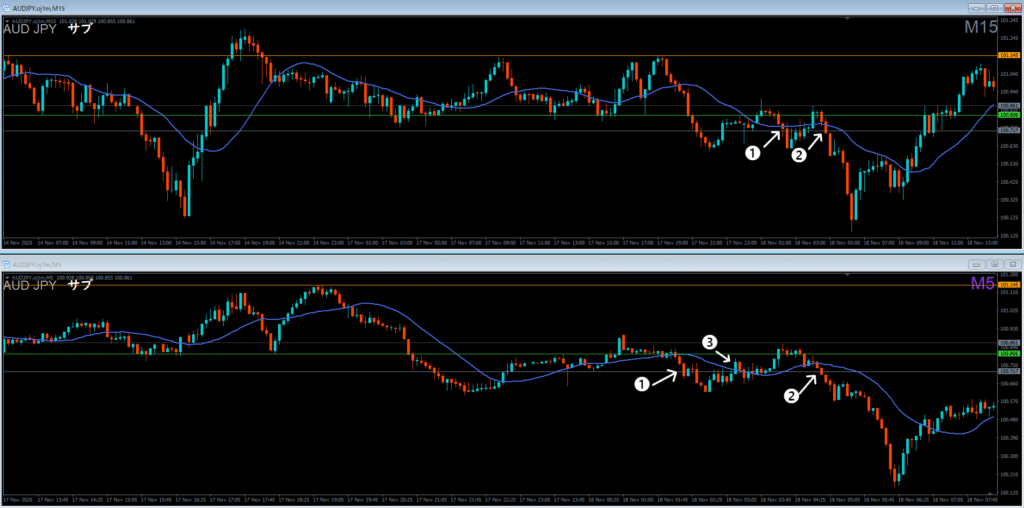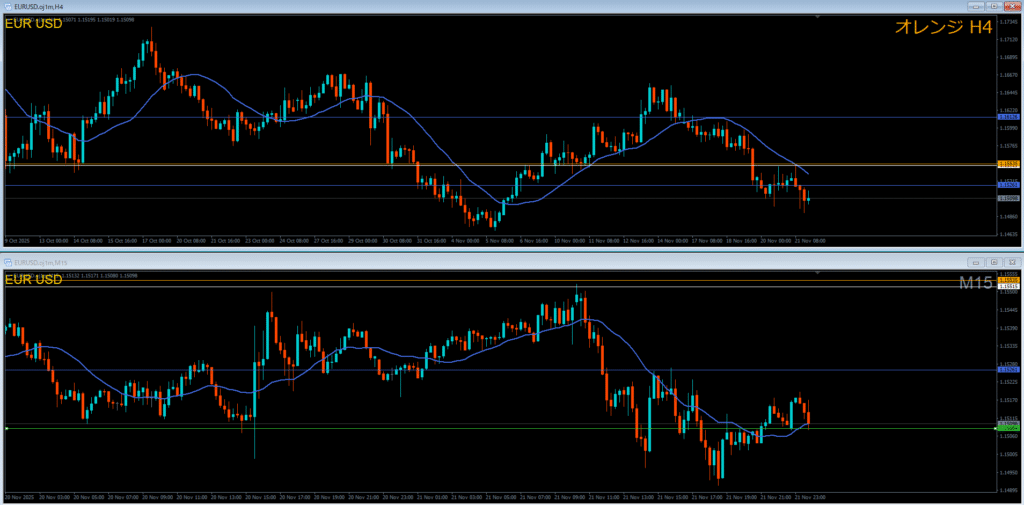 1時間足でみると違和感があり一言でいうと綺麗ではなかった。