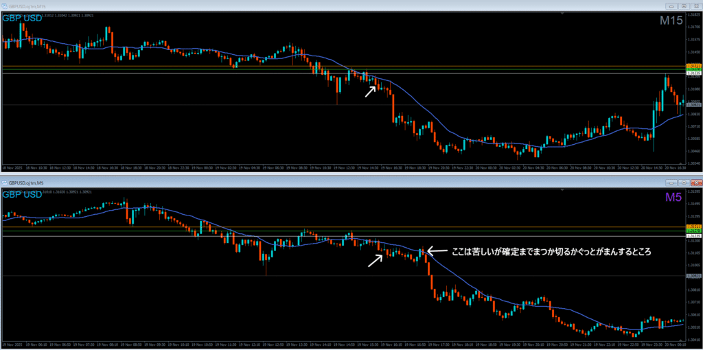 損切りそこでできれば理想だが、今の自分だともうワンクッションおくれそう。