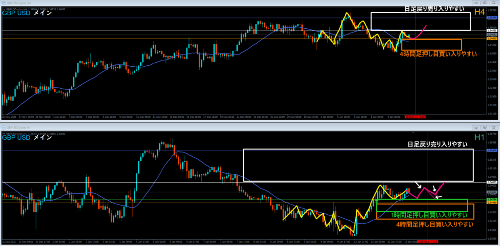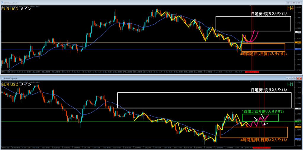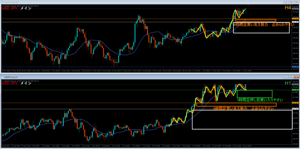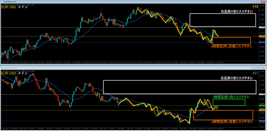 (例:4時間足で押し目買いが入りやすい~)