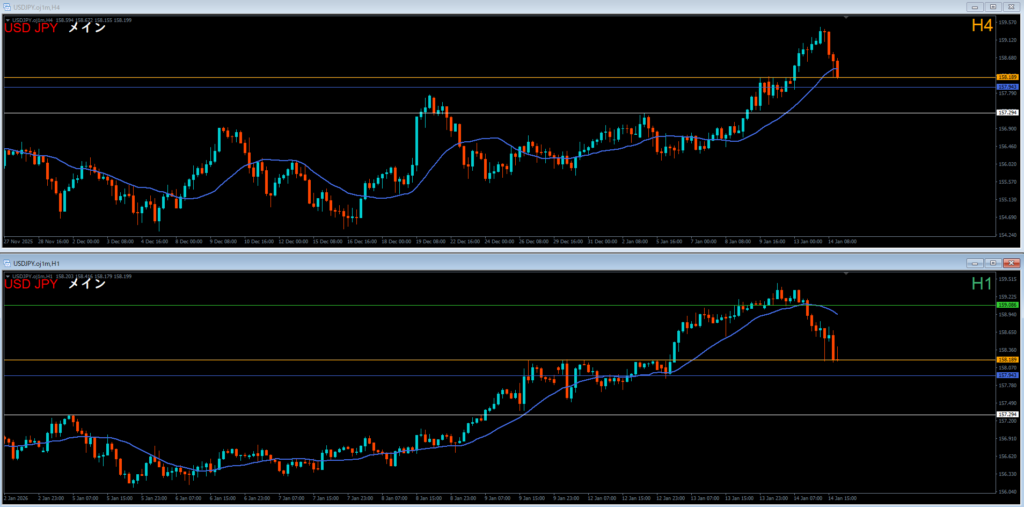 4MAも緩くなって、1時間も水平が上手く見えないので下に抜けてきてもエントリは見送ったと思う。