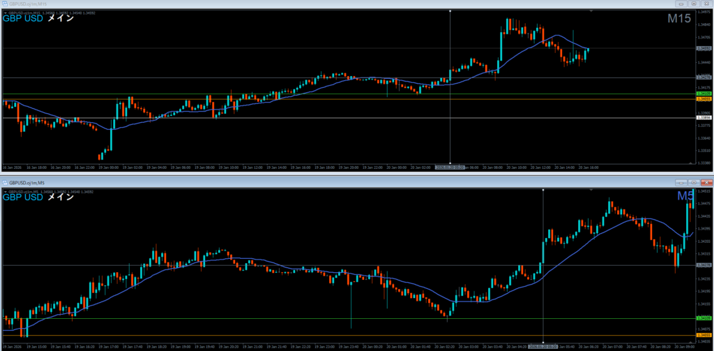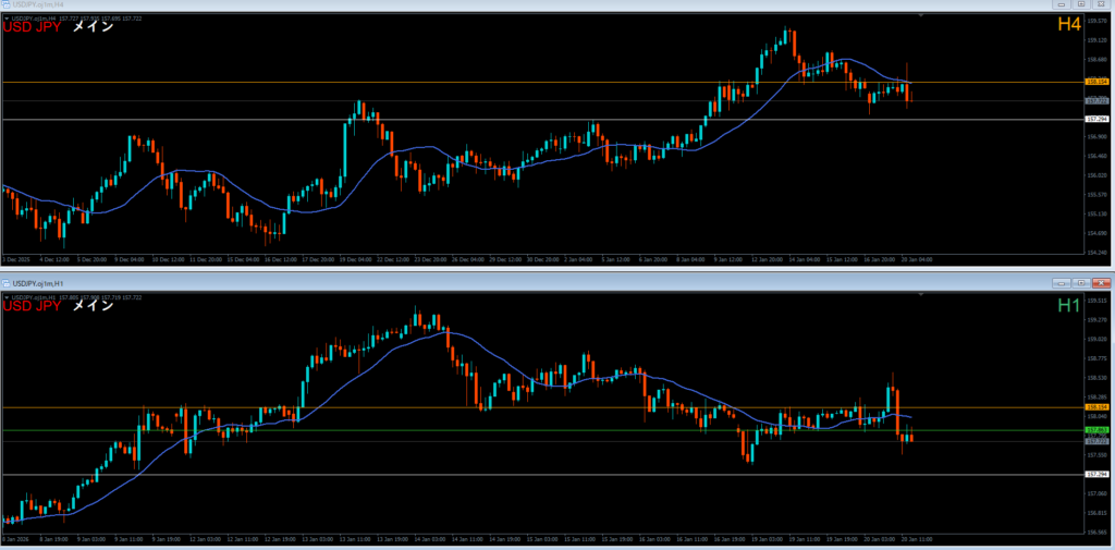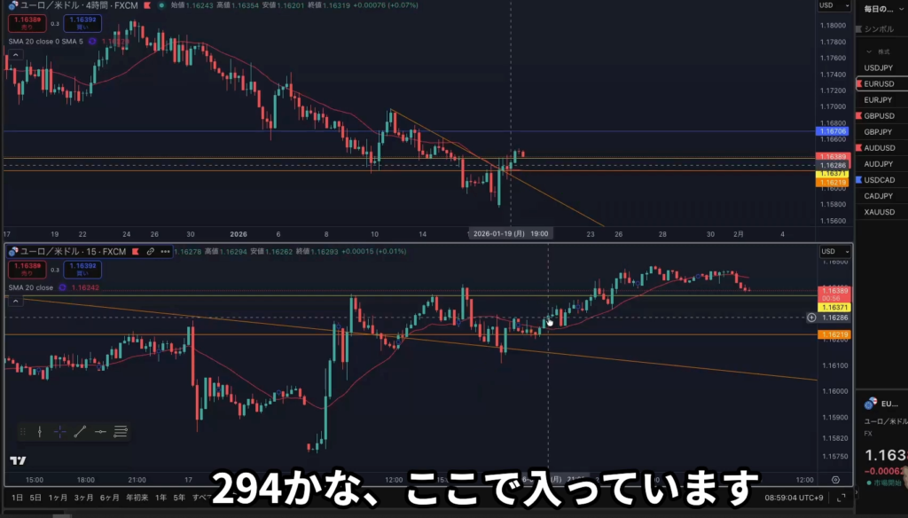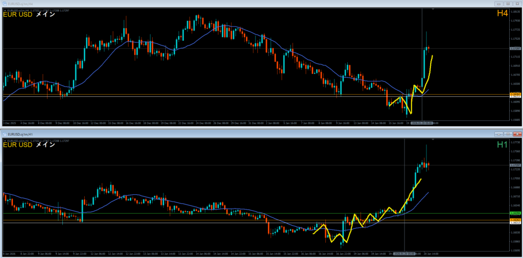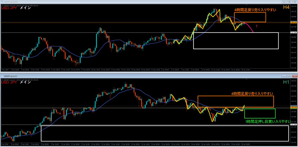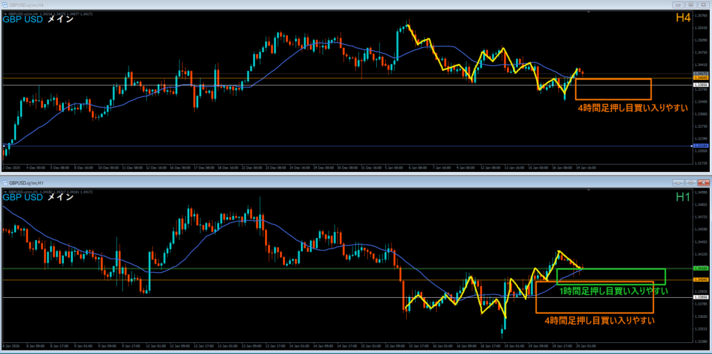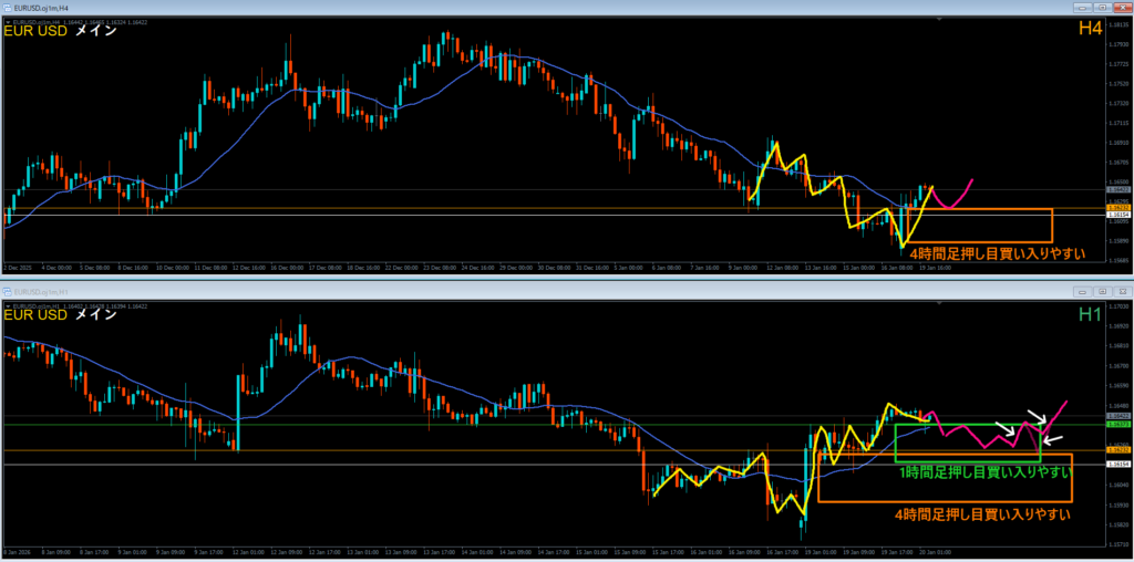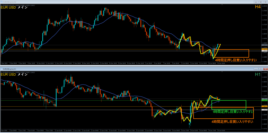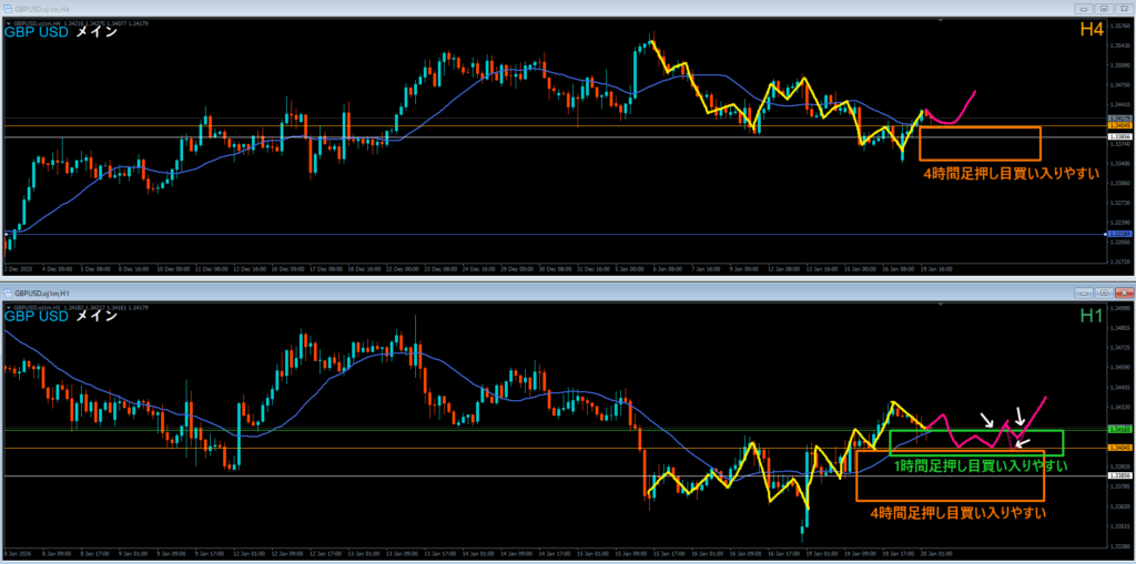 4時間足押し目買いの1時間足の動きをシナリオで見ていく