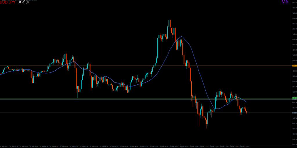 振り返り 20:42 ショート 0.1lot 損 -18pips