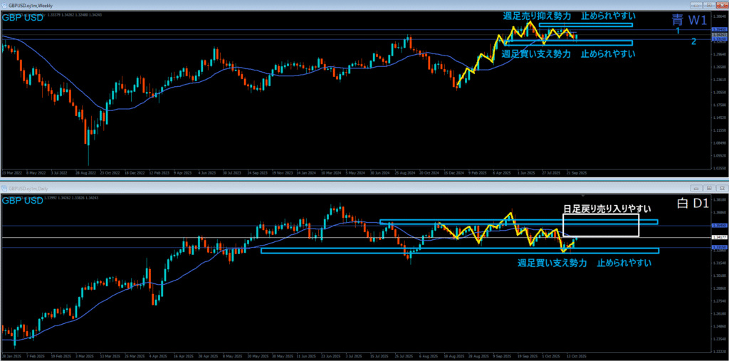 週足MAは上向き→平行。MAに潜ってきて売り抑えとして機能しやすい。
