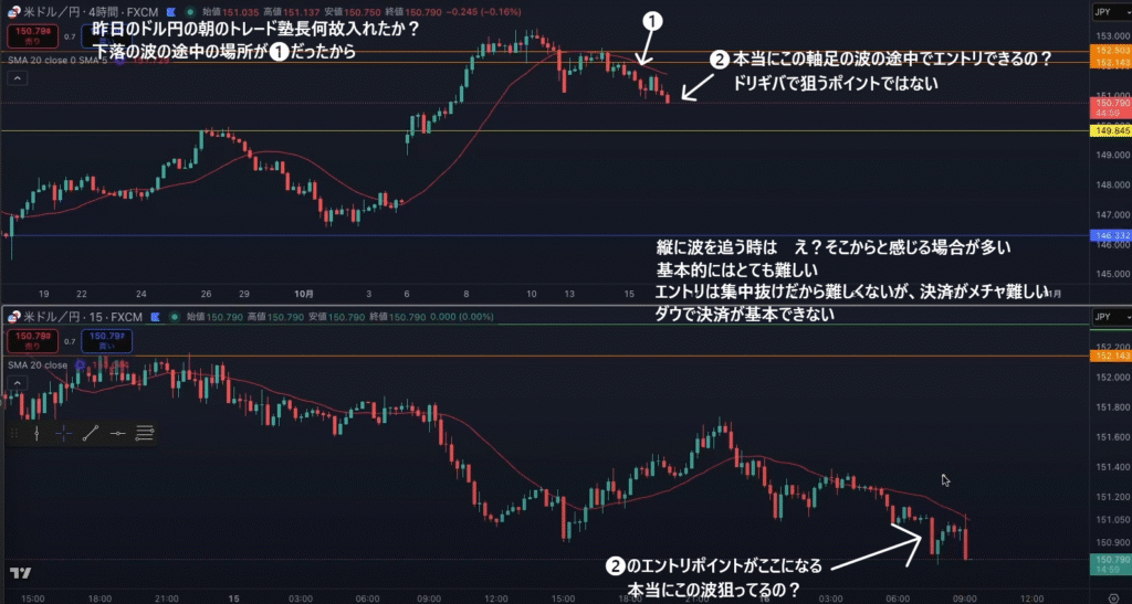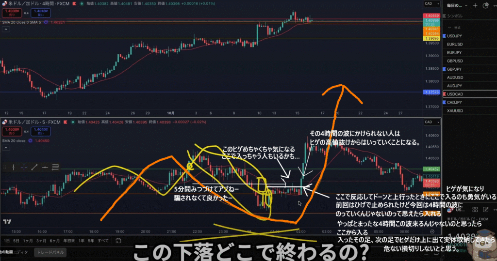 4時間下落の波の途中 ← 途中のどこか?が重要