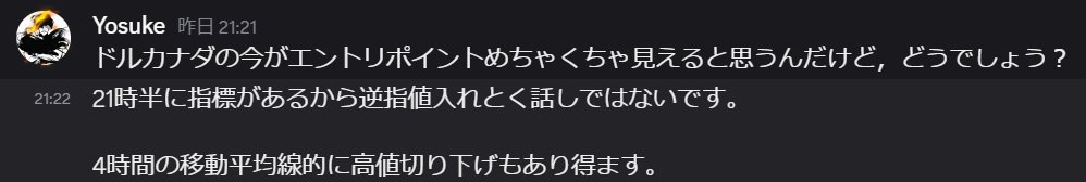 ・昨日も塾長の書き込みでドルカナダのエントリの攻防が経験できたのは自分にとって物凄くプラスになった。
