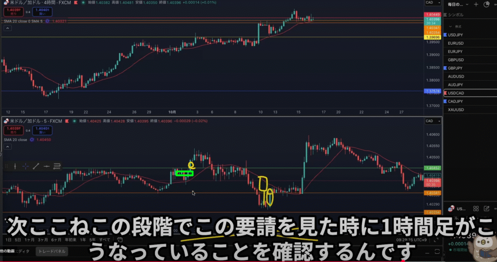 下足に注文の集中視えてエントリと思ったら必ず1時間足、4時間足みてチャートの波のどこにいるのかを把握する。足元だけ見ず、いったん立ち止まって地図を広げるイメージ。