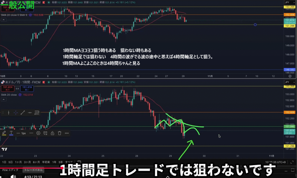 そこから4時間の波が出るイメージができ波に乗れるかどうかが重要。