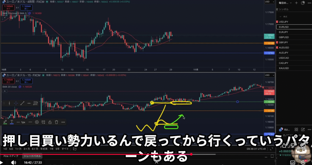 4時間足押し目買いの1時間足の動きをシナリオでみていく