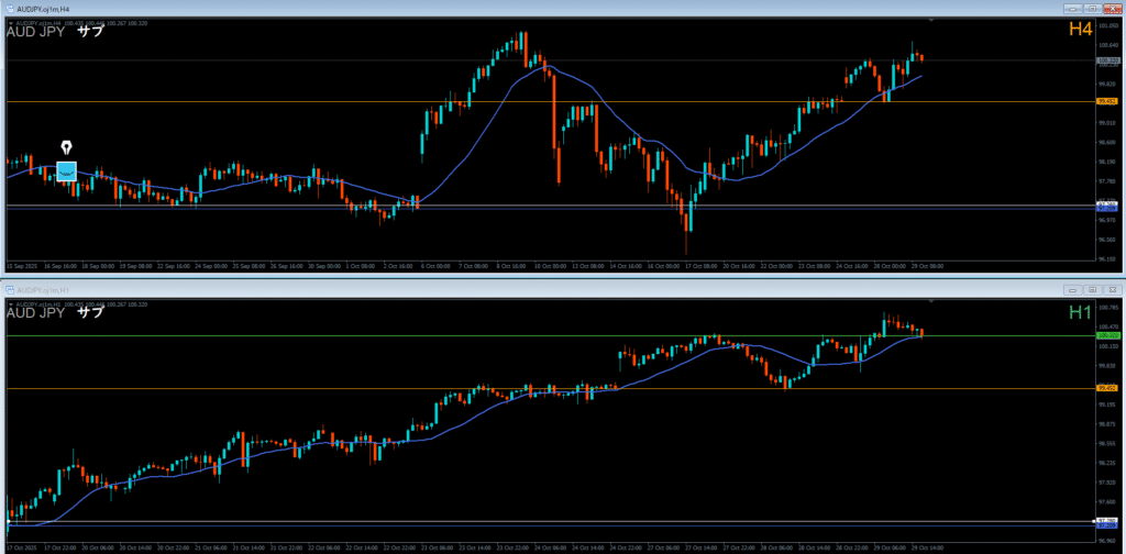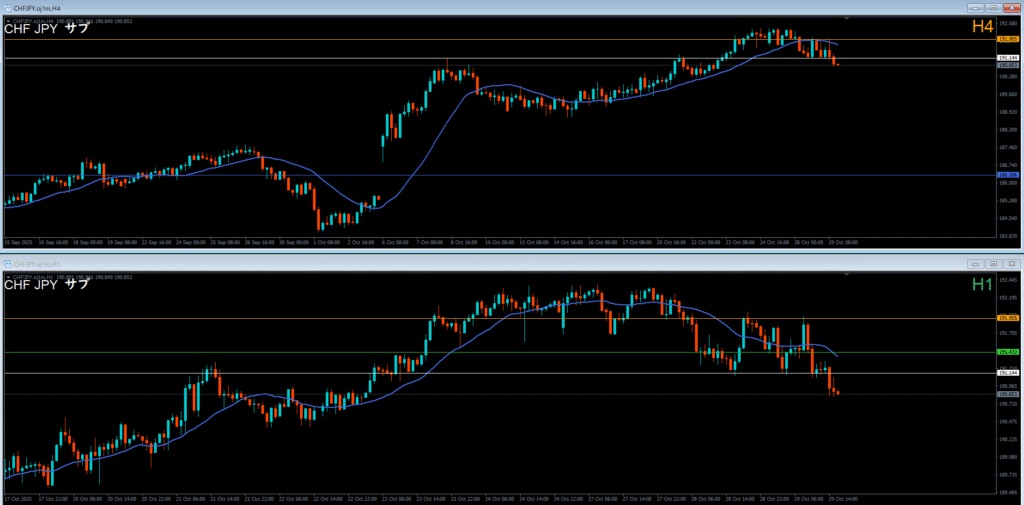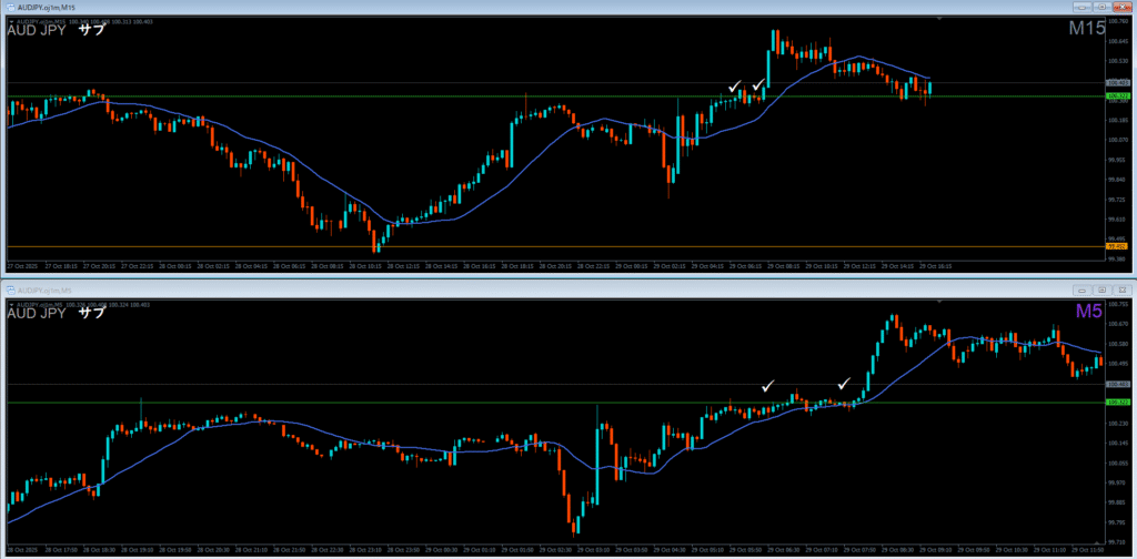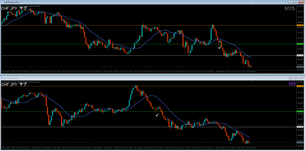 1時間足MAは下向き。売り抑えとして機能しやすい。
