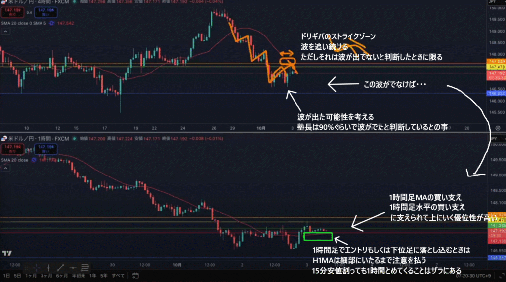 塾長は9割波が出たと判断して追わないといっていたのでそこは寄せていく。
