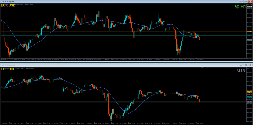 自分は緑のラインでH1TTS出た後15時ぐらいに下位足に落として~で考えていたが1MAが抜けていた。