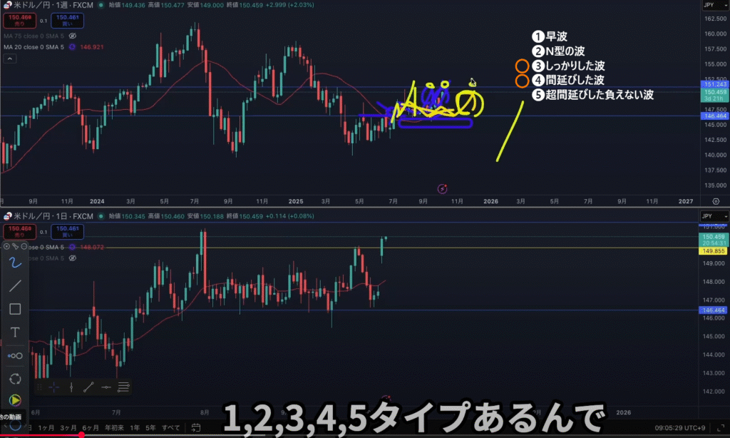 TTS出たレジサポラインで止まるのは必須条件であって波がでるとは限らない。だからどの波を狙っていくのかを自分でしっかり把握する