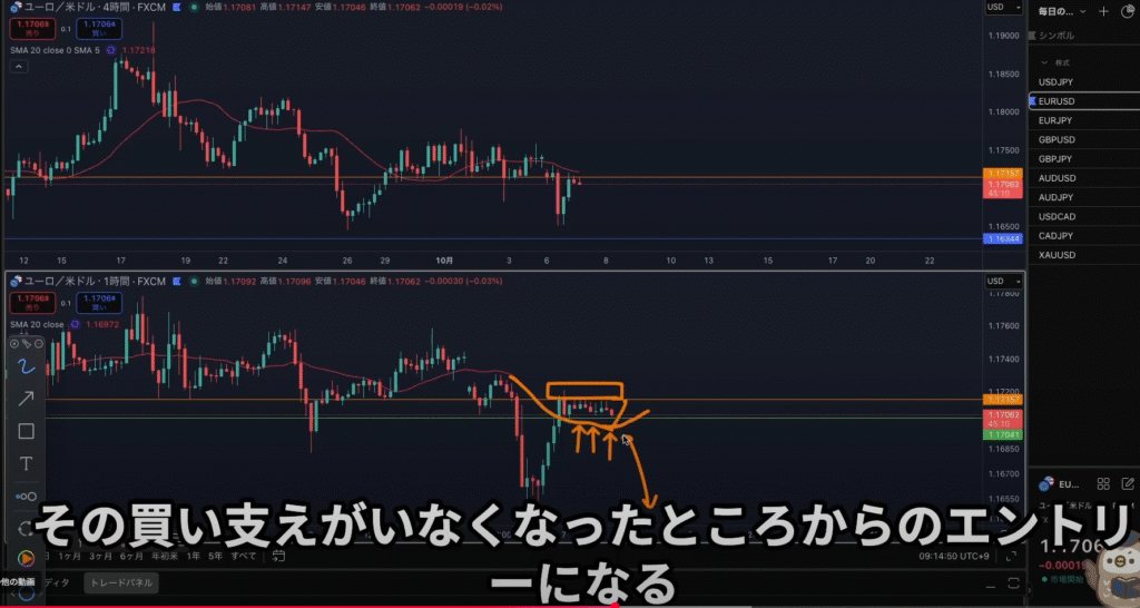 4時間足戻り売りの1時間足の動きをシナリオで見ていく。