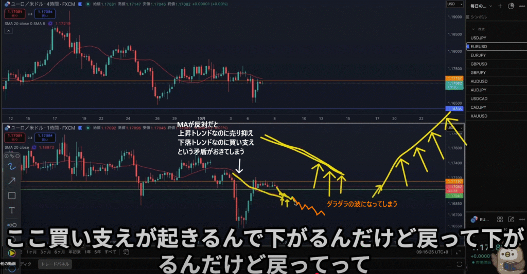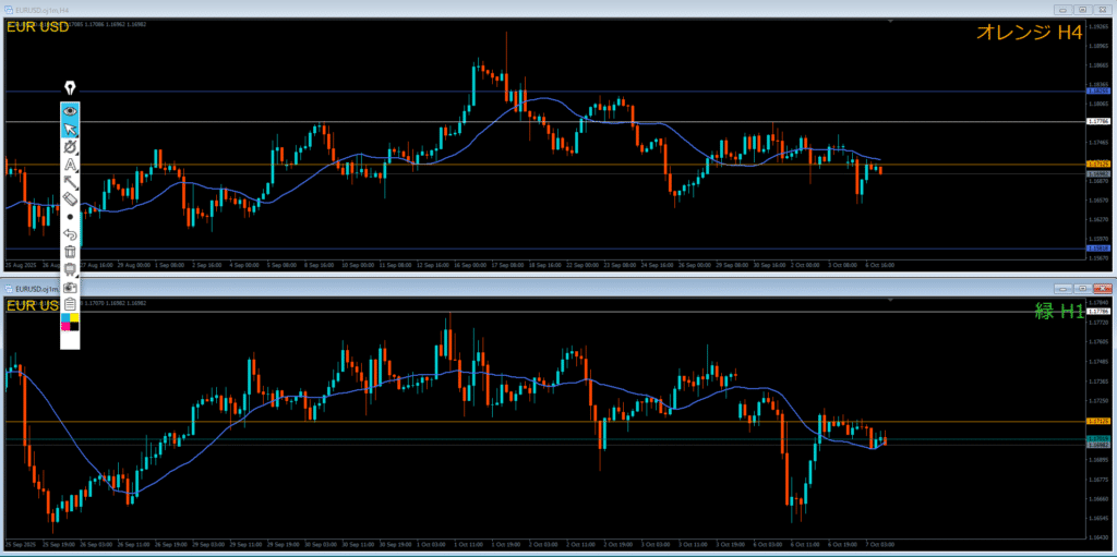 ・ユロドルの解説エントリの詳細まであってよかった。エントリのときH1MAの位置、向き、角度、超重要!!