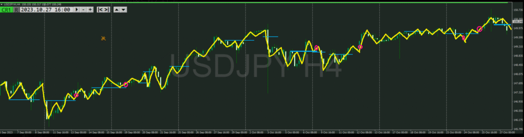 4時間足戻り売りの1時間足の動きをシナリオで見ていく。