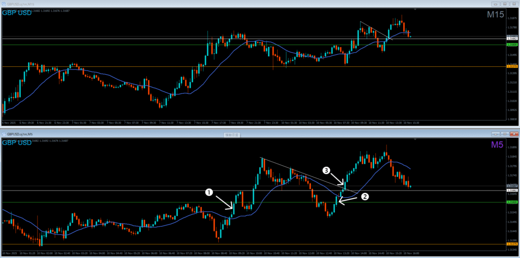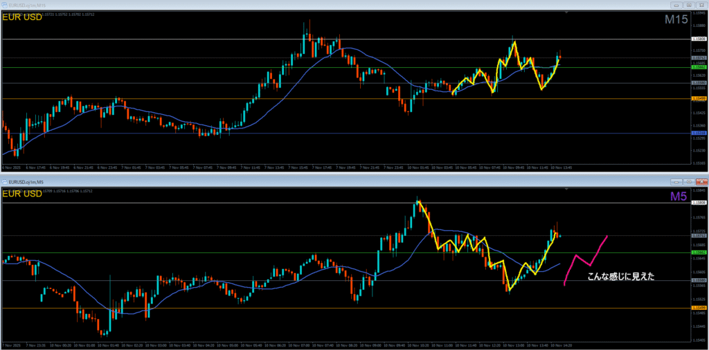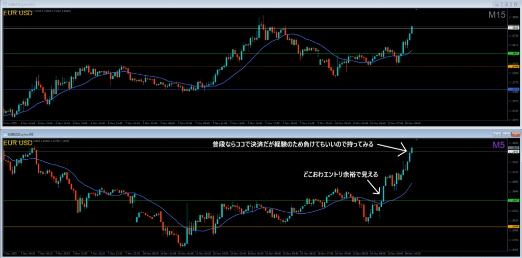 振り返り ❷ユロドル 2025.11.10(月) 14:15 損10 獲得±0