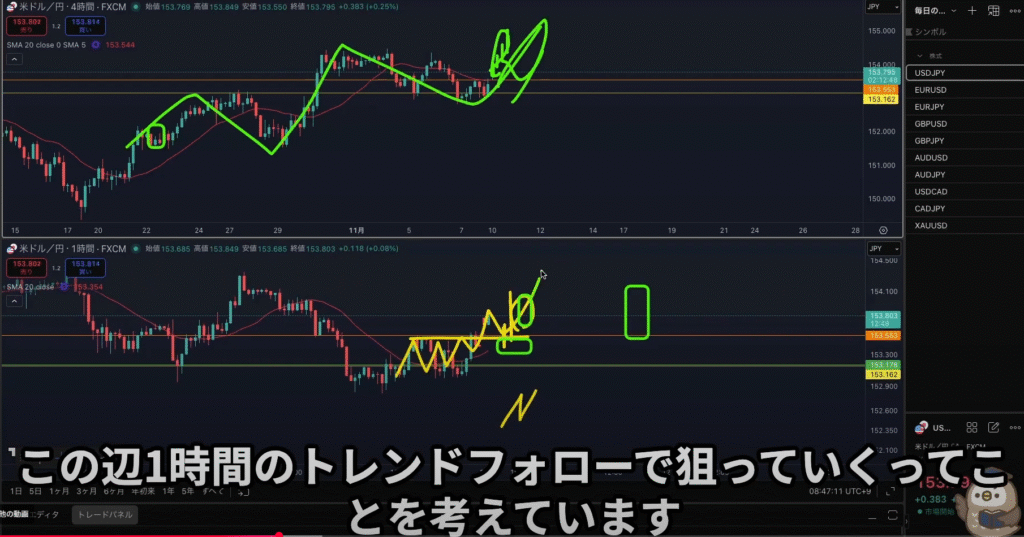 自分は押し目買い狙わないで終わらせたが、ここまで思考できるようにする