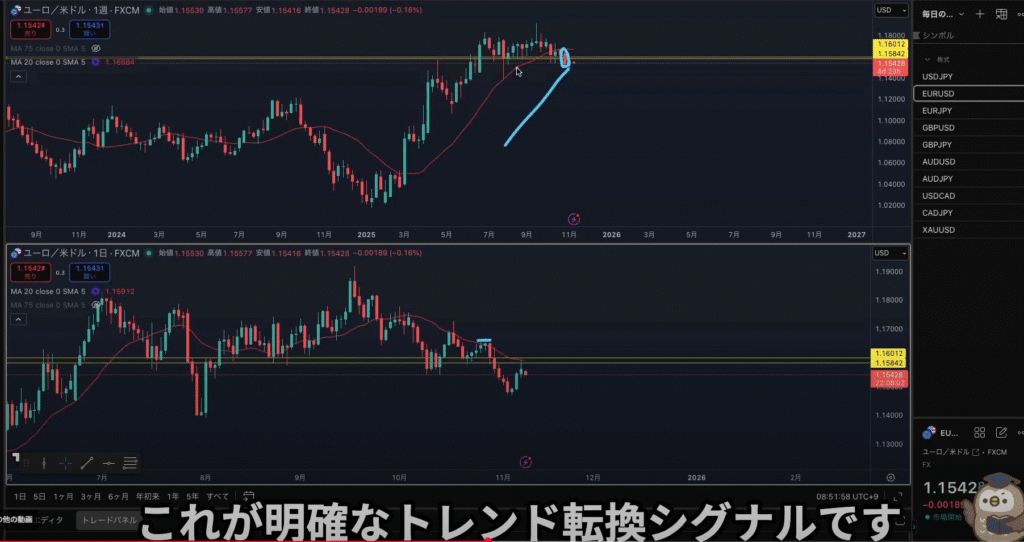 白色の❶日足レジスタンスラインの上には戻り売り勢力がいる。