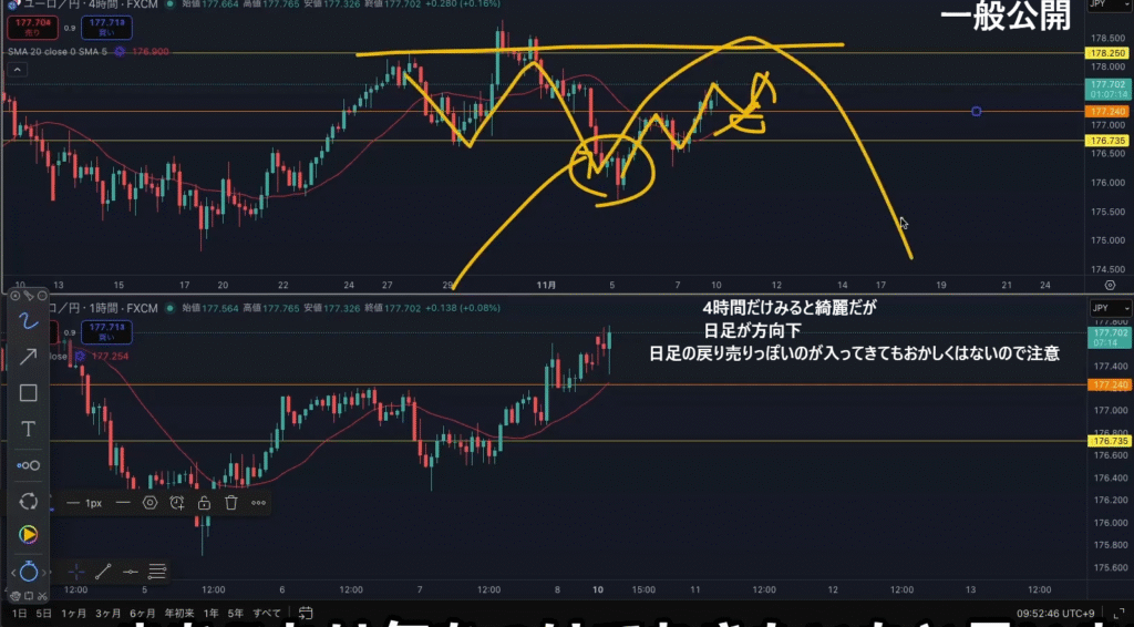1時間トレンドフォローの時の4時間MAが邪魔してたらもちろんかなり気をつけなけなければばららい 自分はそれだけでリスクと感じてトレードしなくていいと判断してもいいレベル。