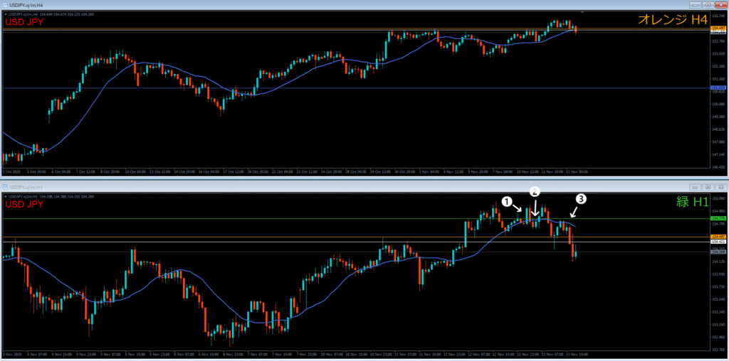朝のシナリオでは気づかなかったが、朝09:00H1❶エントリポイントきてたね・・