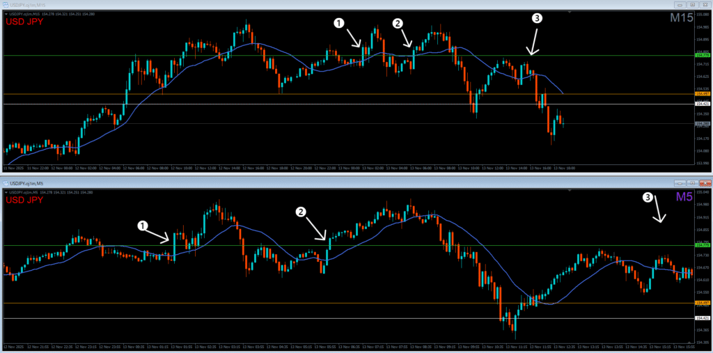 エントリポイントも横にずれるの巻きも完璧だし、15MA抜けるまでまってからなのも完璧。