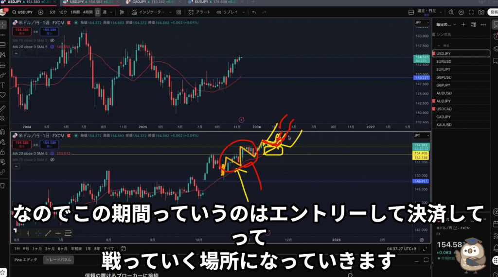 ❸2025.11.17(月) 19:45 1時間ドコおわの15分ドコおわの5分ネックラインでエントリできる