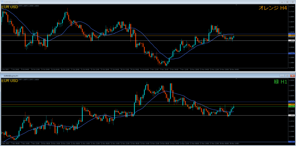 ・4時間も横横、1時間も横横なら “何も起きていない” と判断すべき。
