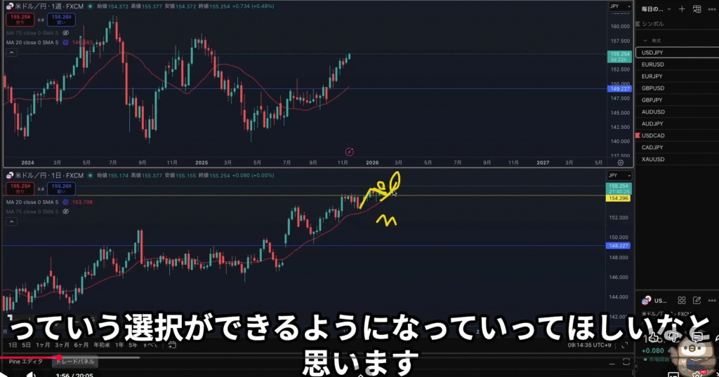 ・上記すべて行うのがMTF分析。上位足→下位足 下位足→上位足 優位性とリスクをしっかり把握する。