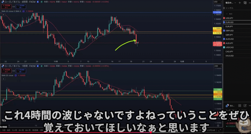 ・日足の押し目買い否定の流れなので“戻り売りポイントではない。この波を4時間と勘違いして追うと全部裏目に出る。