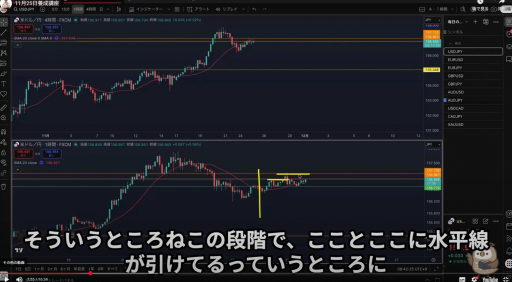 ❺水平線、明確に意図をもって引く。どこに?何故?どんな勢力?市場参加者を意識!