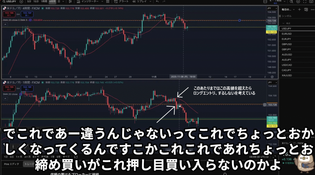 4時間押し目買いの1時間足の動きをシナリオで見ていく。