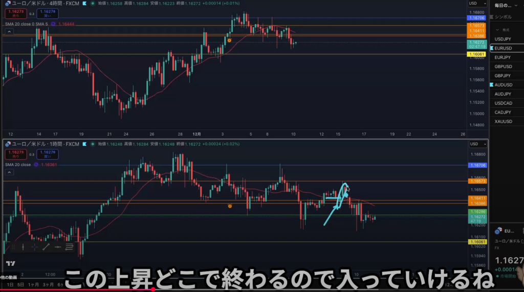 1時間足みると急に伸びて急に押してくる感じなので1MAに逆らわないように気を付ける。