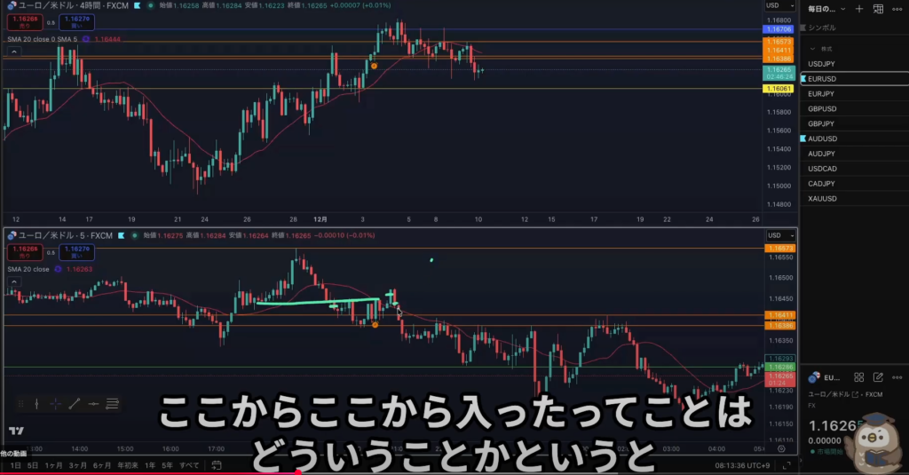 エントリの仕方も1回目の損切も、2回目の再エントリも理解できた。