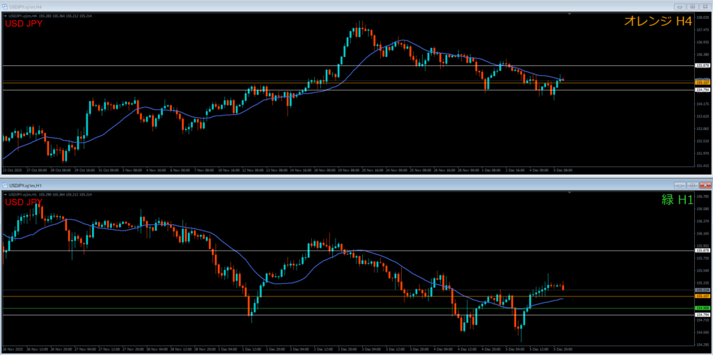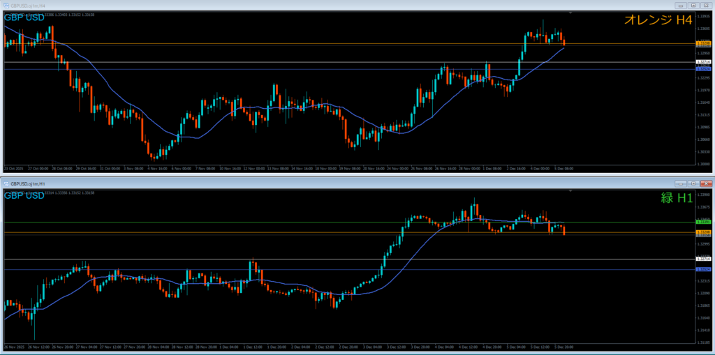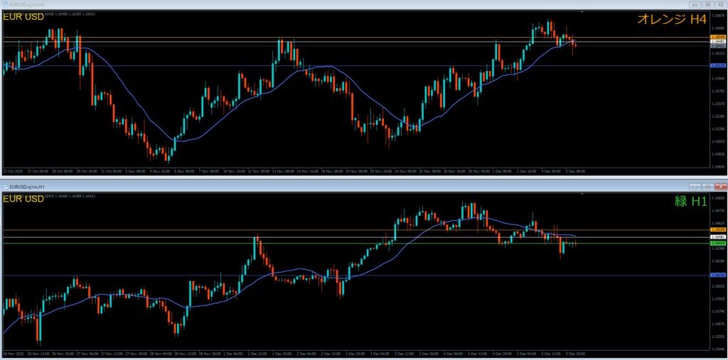 オレンジ色の4時間足レジスタンスラインの上には戻り売り勢力がいる。