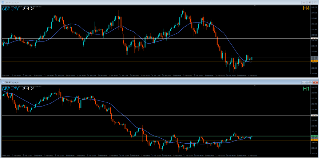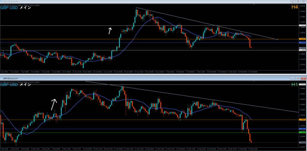4時間足 方向 下