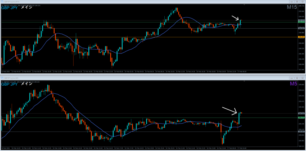 15分が高値ドーンと越えてスーッと長ヒゲつけておちてききた時に