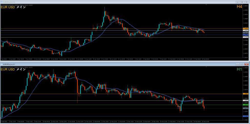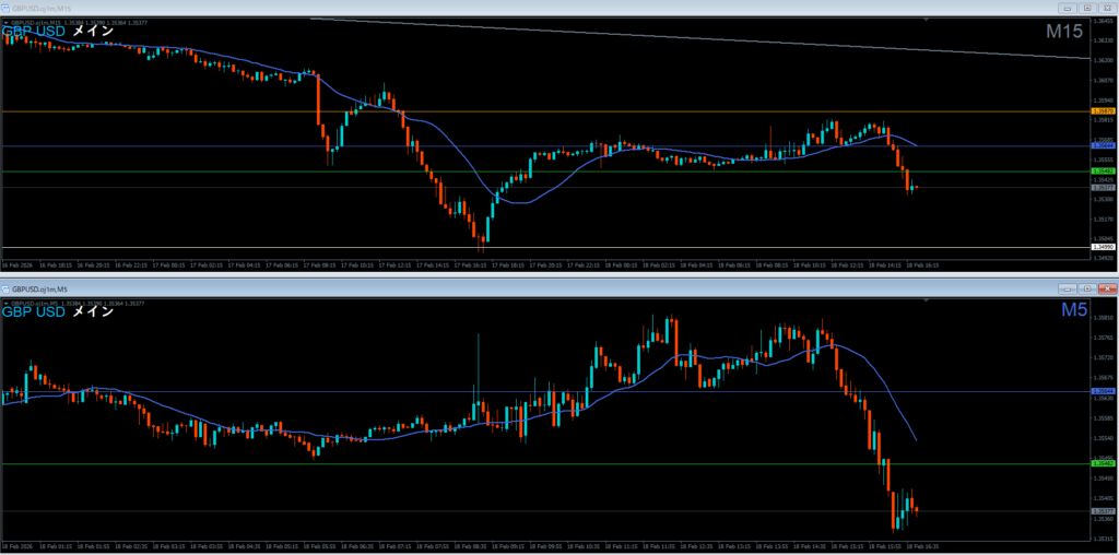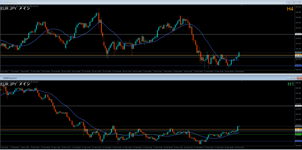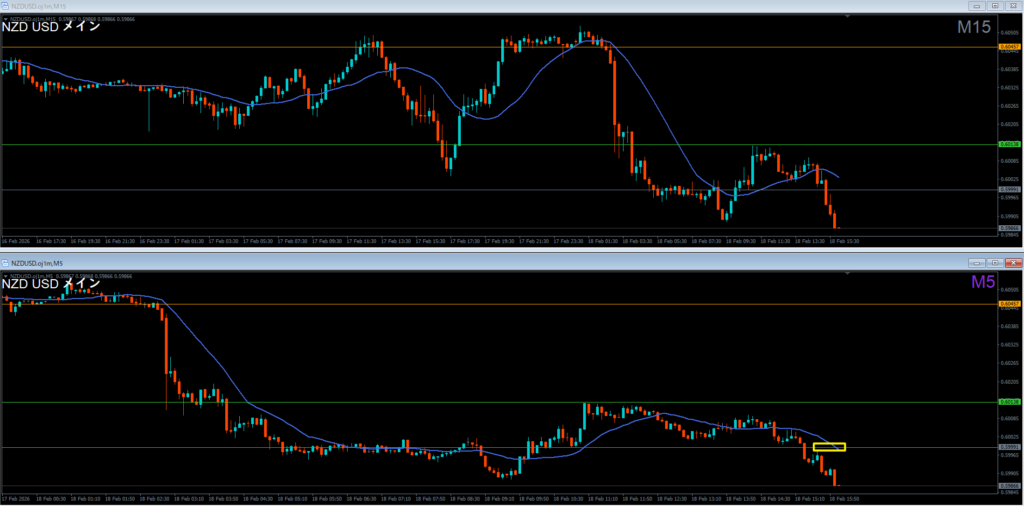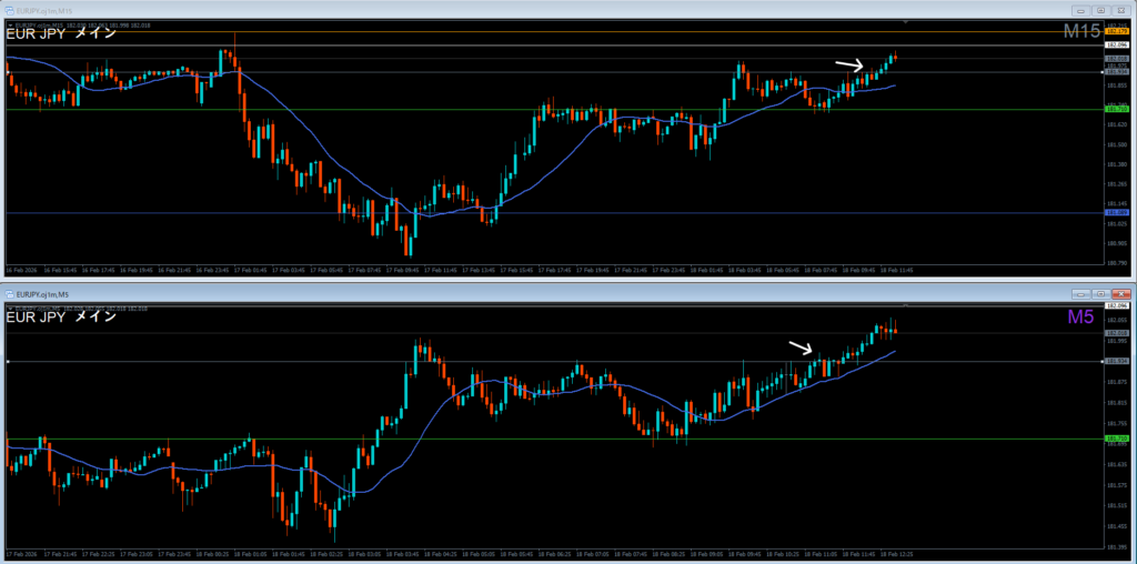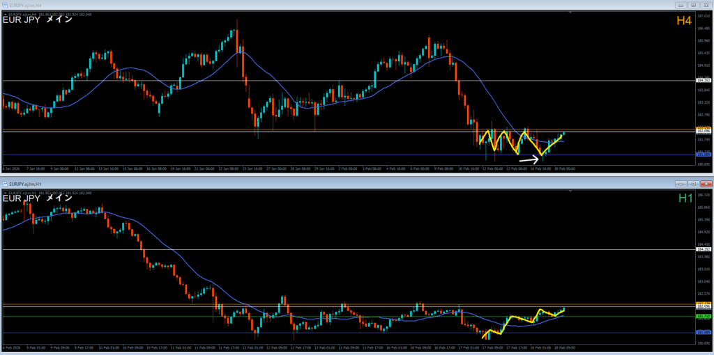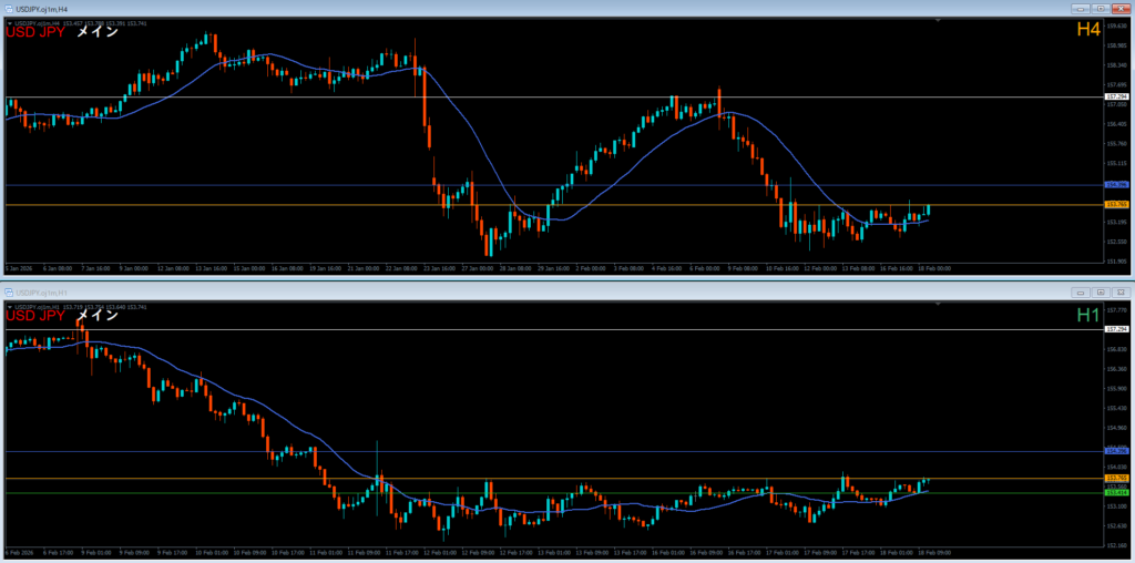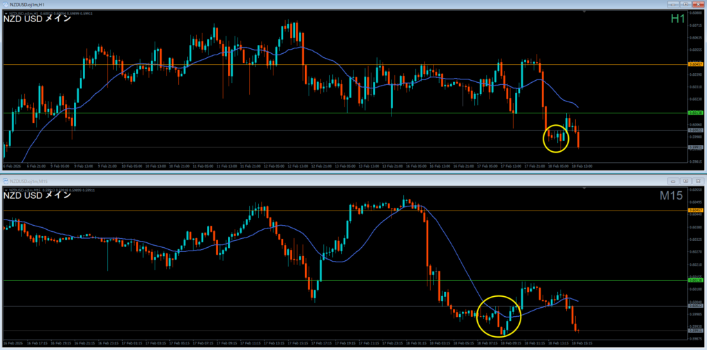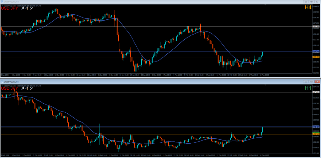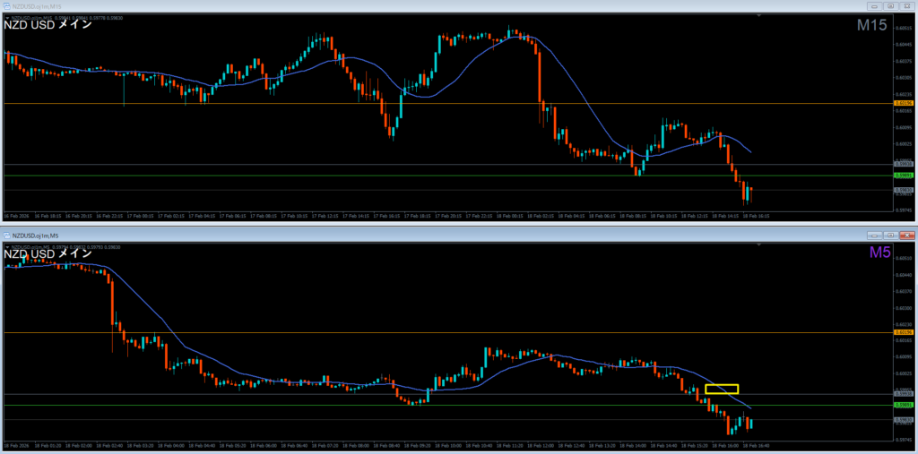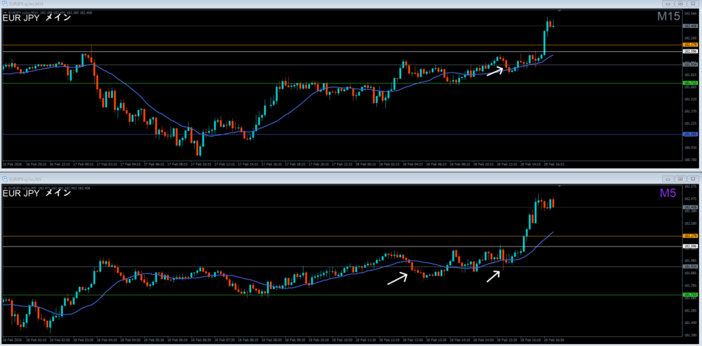 振り返り 2026.02.18 22:20頃 エントリ 0.1lot 損10 獲得₊10