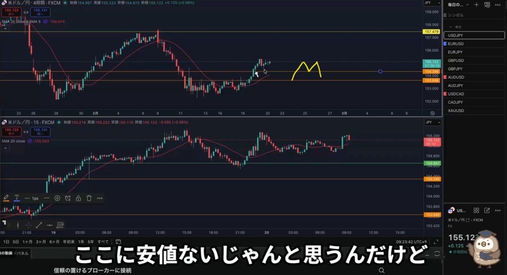 ❶が4時間足前回高値。この辺で当たり前だがひっかかたなというイメージ。