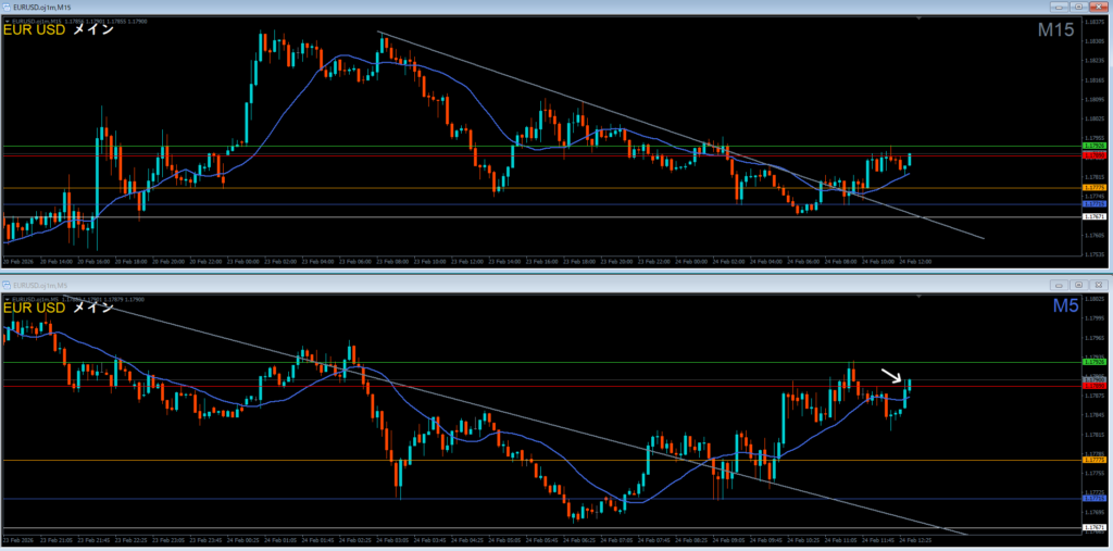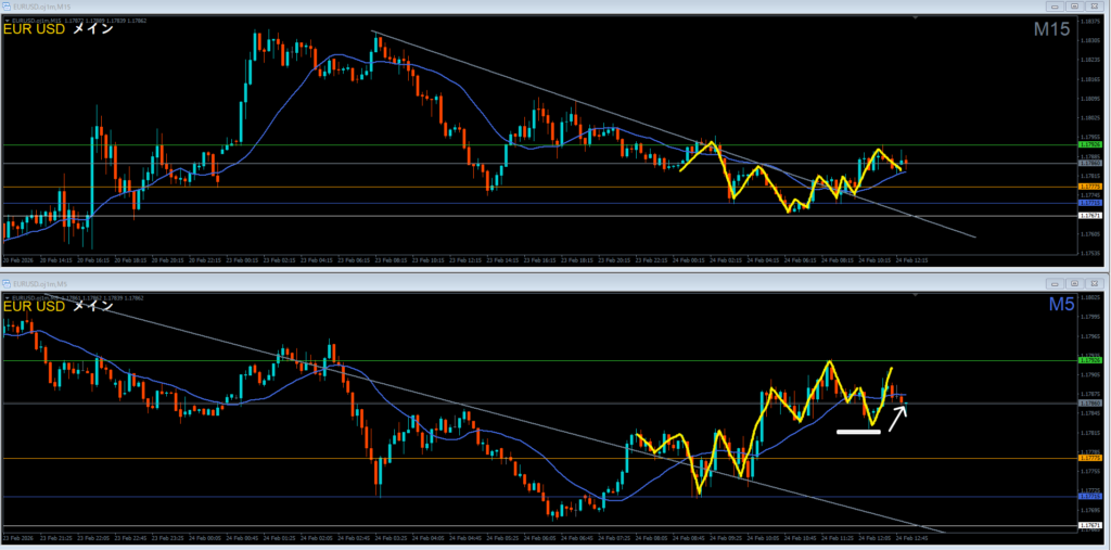1時間抜けるか試すかの15分押し目買いっぽいイメージ