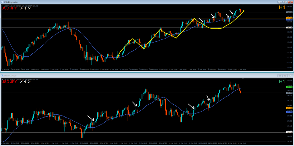 戻り売りは4時間戻り売りの形も見ていくが、日足戻り売りのドコおわ狙っていく。