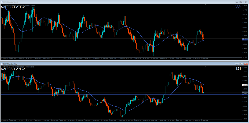 青色の週足サポートラインの下に押し目買い勢力がいる。