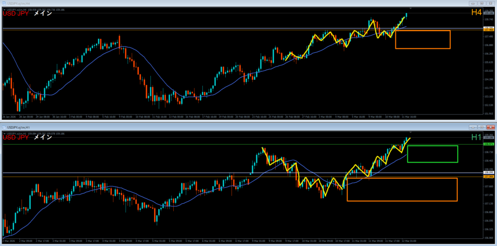 ●エントリ足 4時間軸足⇔1時間